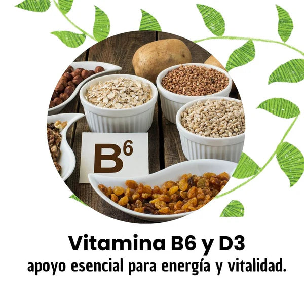 - Vitaminas B6 y D3: apoya el metabolismo celular y la producción natural de energía.✨