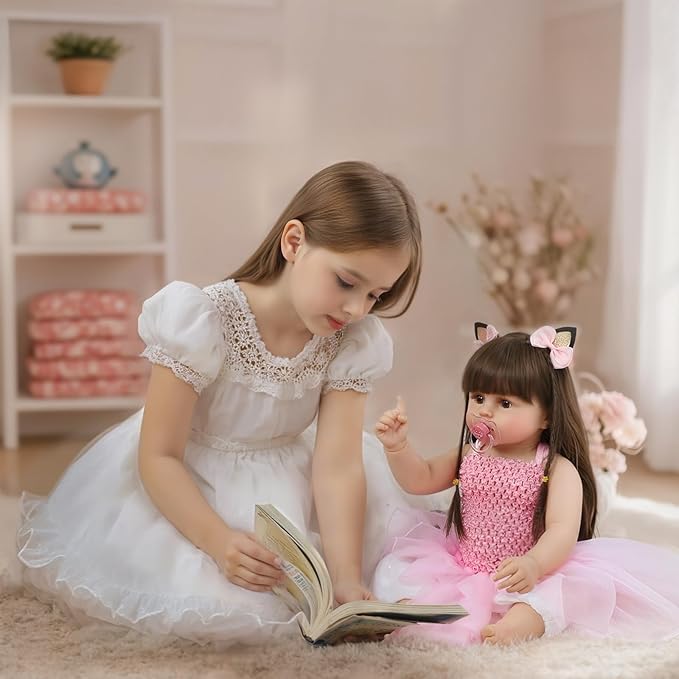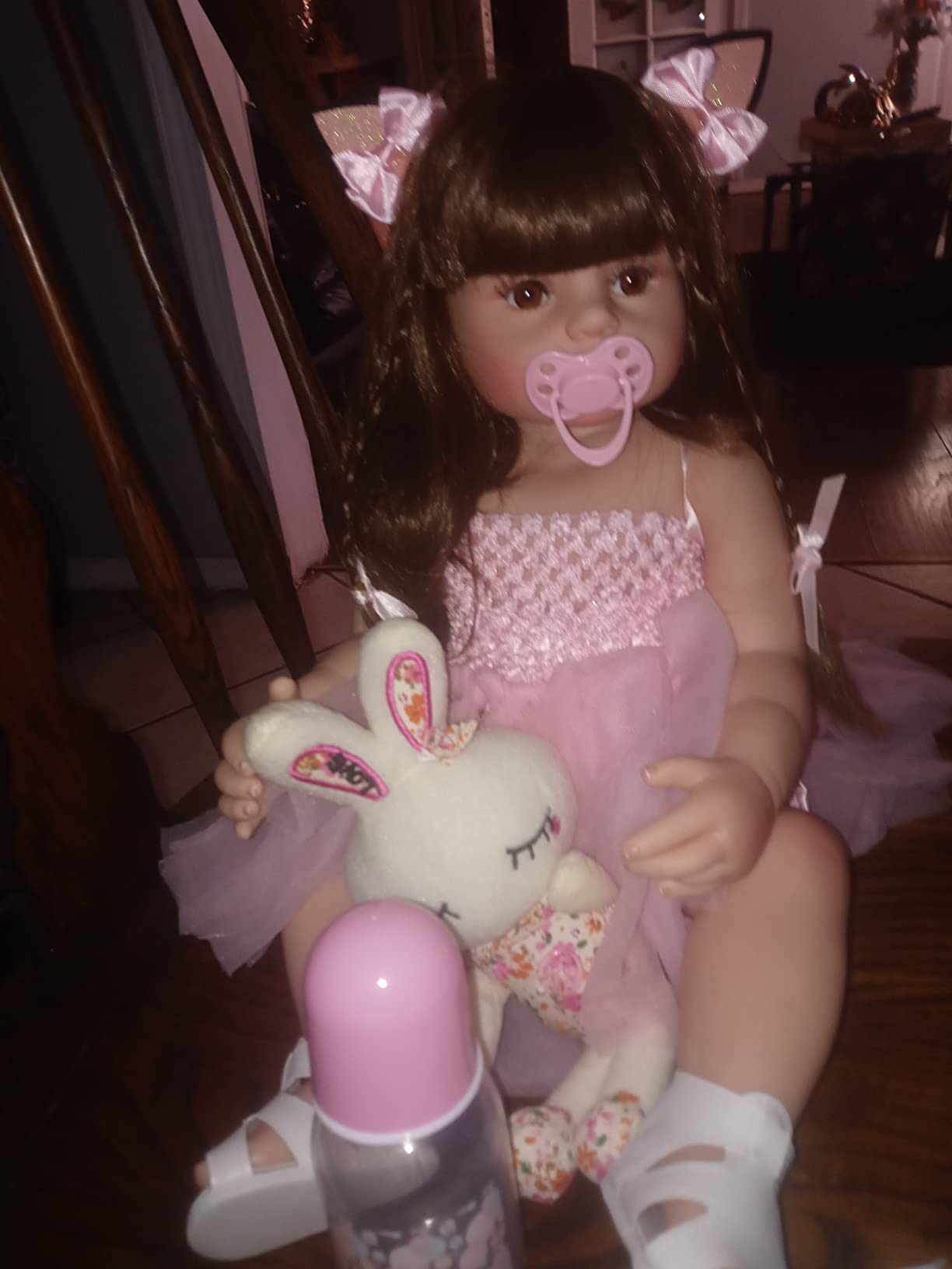 "Esta muñeca es muy realista, tiene la piel suave, pesa lo suficiente y es anatómicamente muy correcta, algo que sorprendió a sus padres, ¡y a mí también! Fue el regalo favorito de mi nieta y de sus amigas. ¡He comprado dos más para Navidad para mis otras nietas! ¡La recomiendo muchísimo!"