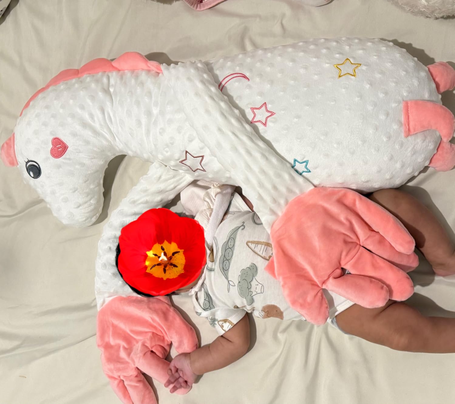 "Lo usamos como parte de la rutina de sueño: musiquita + calor + palmaditas. Mi bebé ya asocia el peluche con descanso y se queda quietico casi enseguida. Lo amamos."